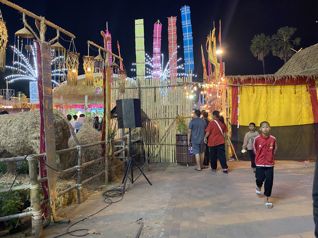 GPSはこのまま直進だし、キューシートにも、お寺の入口から自転車を押し歩いて300m先の車道に出る、と書いてあるので、どうやらこのナイトバザールを突っ切るのが正解のようです。