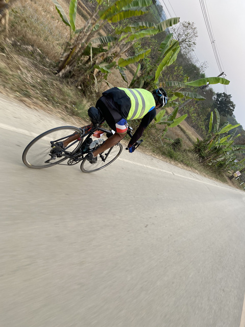 時々話しながら、パワーメーター付けてパワー一定で走るのがいいよ、とかいろいろアドバイスももらいました。 犬に噛まれかけてびっくりしたよとか話してると、初日の夜にも飛び出してきた犬にびっくりして落車した中華系の女性がいるとかいう話も聞きました。 Wiwinさんでしょうかね。