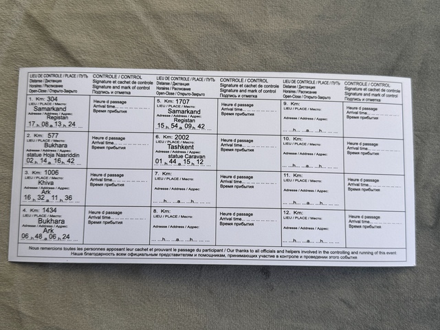 裏側はこんな感じです。 2000kmも走るのに、チェックポイントが6ヶ所しかありません。