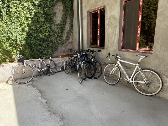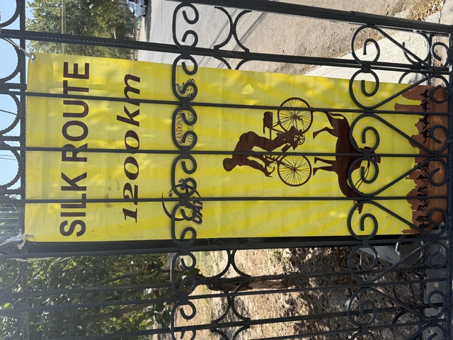 集合場所は主催者の自宅兼仕事場でした。 表にはSILK ROUTE 1200kmのかっこいいのぼりが出ていました。