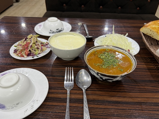 サラダなどは注文しなくても勝手に出てきます。 代金は取られるのでGoogle Mapのレビューなどにはロシア人が文句を書いていますが、そういう文化なのでしょう。 いらなければ、いらないと言えばいいと思います。 ヨーグルトのようなものがここでも出てきましたが、さっき食べたばかりなので、これはいらないというと、持っていきました。
