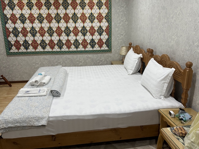 大きなベッドです。 昨日もタシケントも細~いベッドだったので、大きなベッドはうれしい限りです。