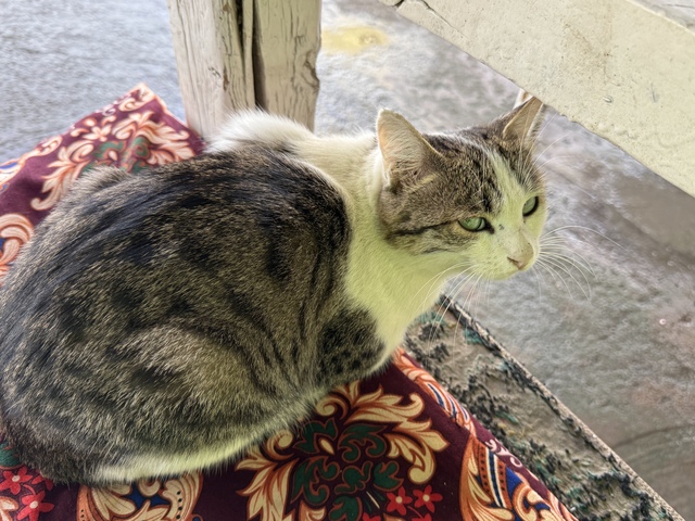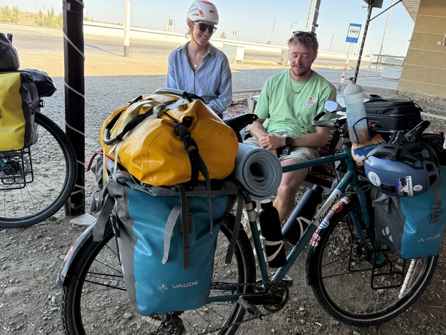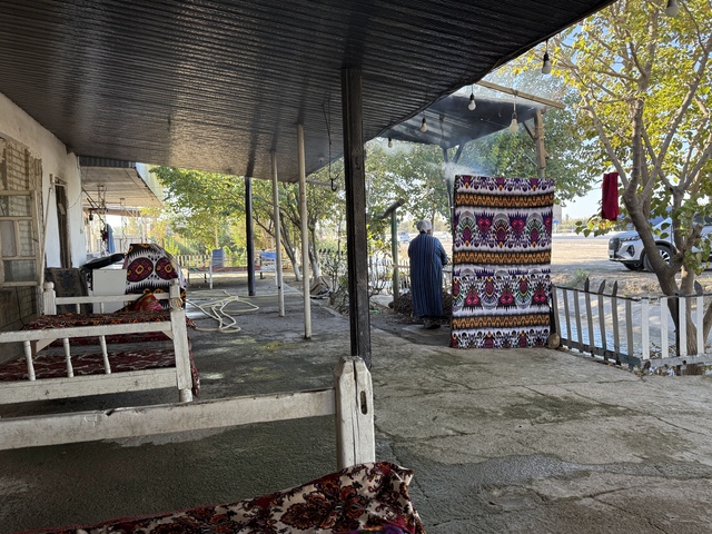 トイレから出てくると、また、物珍しそうにおじさん達が集まってきました。 翻訳アプリと身振り手振りで、今日はどこまで行くのか、というような話をしました。 おじさん達は、これから車でXivaまで行くそうです。 200kmくらいあるので、安全運転で行ってくださいね。