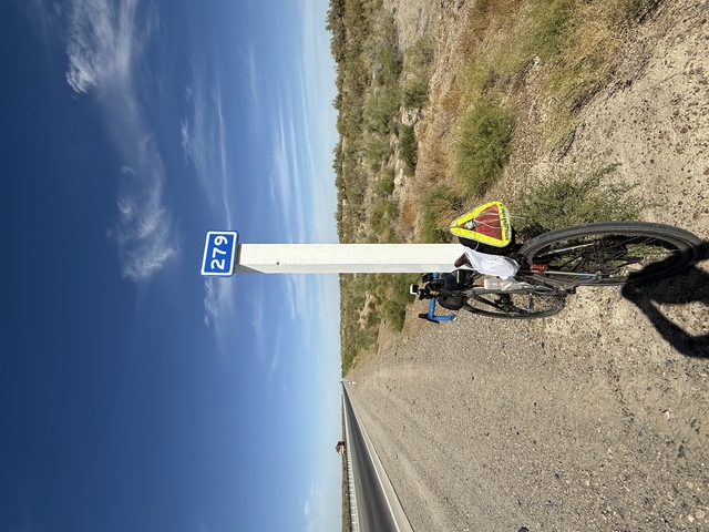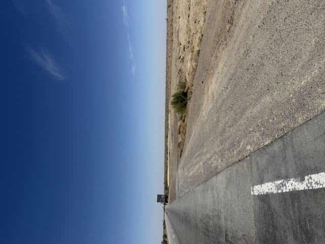 ここまでの2日は車通りの多い幹線道路でしたが、ここから40km程を過ぎると、300kmくらい砂漠が続きます。 砂漠の区間もGoogle Mapのサテライトで小さなお店やガソリンスタンドは時々あることは確認しています。 50km行けば何かある、というような感じです。 PBPやLELなどでも、チェックポイント間は70kmくらいあったりするので、ものすごく困るということはないと思いますが、不安なので、少しの補給食と水はいつもより多めに持ち運ぶようにしようと思います。