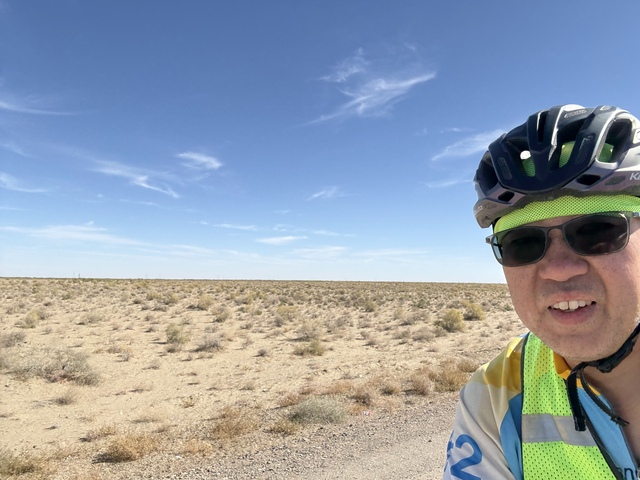 まっすぐな道路をひたすら進みます。 暑くなってきたので半袖に着替えです。