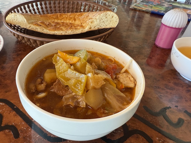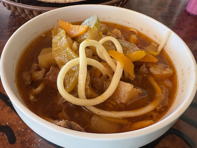 ラグマンをいただきました。 おいしいスープにうどんが入っています。