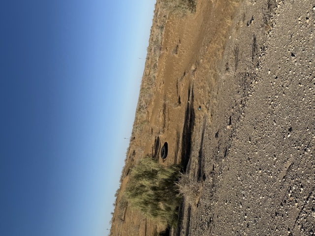 ちょっとわかりにくいですが、タイヤが落ちています。 この砂漠区間で、バーストしたタイヤを数百個は軽く見ました。