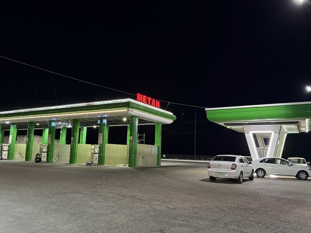 ブハラから102kmくらい、時刻は12時です。 ガソリンスタンドがあったので水を補給します。