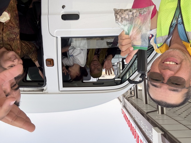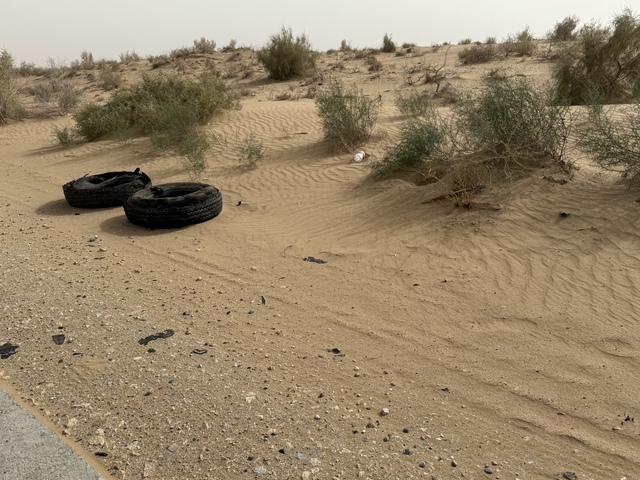 ここの砂漠の道路沿いは、実はあまりきれいではなく、ゴミが散乱しています。 そのゴミを地元の集落の人たちが集めているようです。