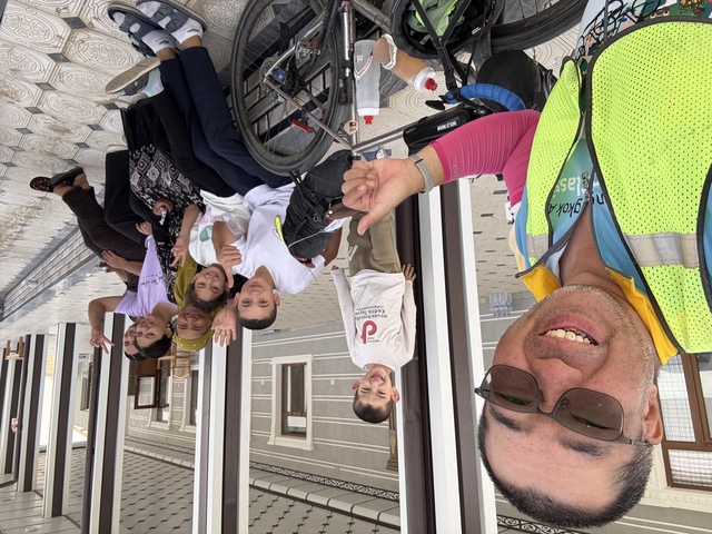 さて、出発です。 砂ぼこりがすごいので、ちょっとマスク的なものをしてみました。 暑いので途中ではずしましたが。。。