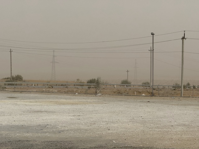食事をして外に出ると、かなり砂っぽくなっていました。 横風なので、砂が巻き上がっているようです。
