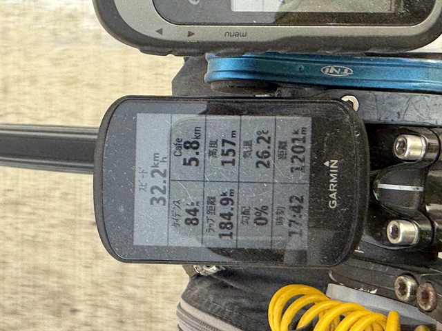 ガーミンが1200kmを超えたので、パチリ。 砂だらけですね。