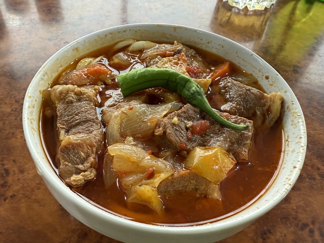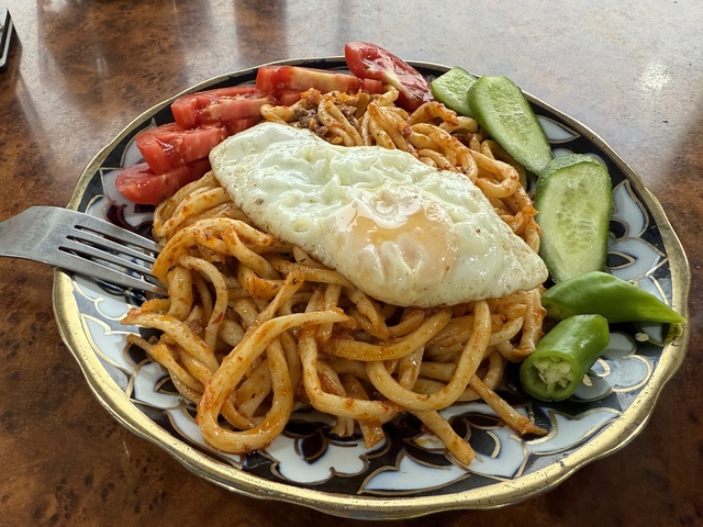左上のShorvaと左の上から3番目のQovurma Lagmonを頼みました。 スープと焼きうどんみたいなのです。