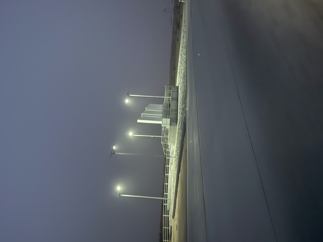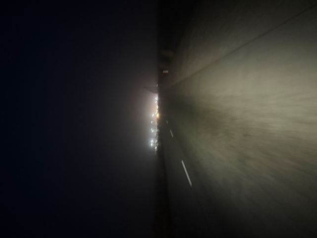 しばらく走ると、日が落ちて暗くなりました。 暗くなると、砂ぼこりがライトに照らされて、いかに砂だらけかということが分かります。